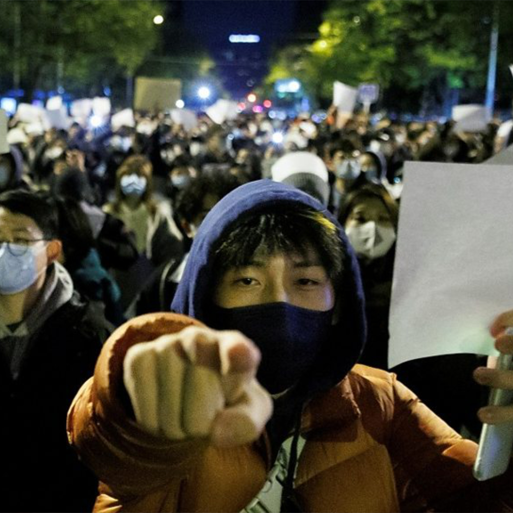 2022年新疆乌鲁木齐大火后,中国多地爆发“白纸运动”,民众举白纸抗议清零政策和言论封锁,要求自由与改革。上海、北京、成都、广州等地出现示威,高校学生与市民参与,部分抗议者被警方带走。2022年11月26日晚,上海市民在上海乌鲁木齐中路抗议,喊出“中共下台,习近平下台”的诉求。